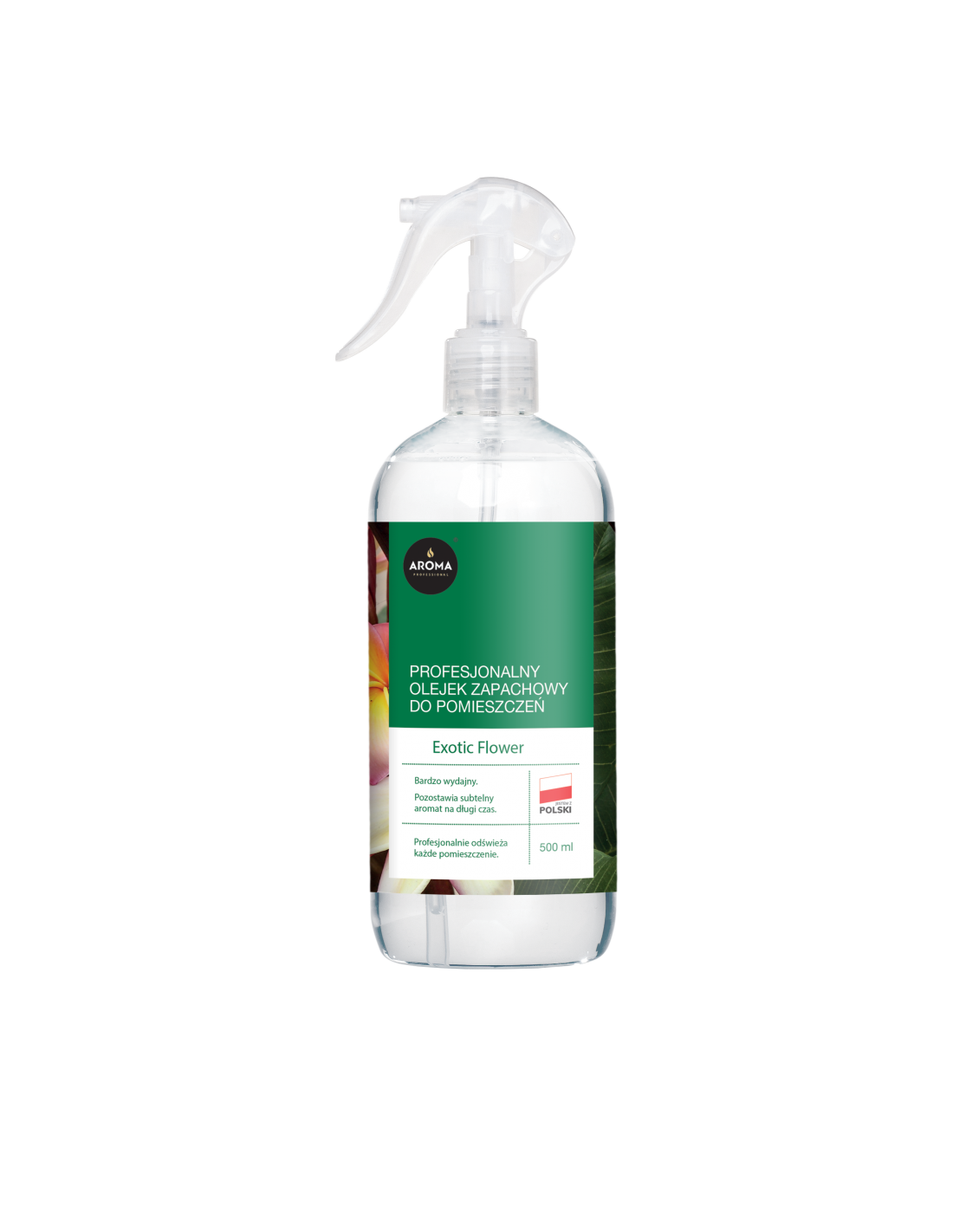 Aroma Exotic flower to profesjonalny olejek zapachowy o pojemności 500 ml, który wprowadza do pomieszczeń intensywny, słodki aromat.. Produkt skutecznie neutralizuje nieprzyjemne zapachy, nadając przestrzeni przyjemny i energetyzujący klimat.