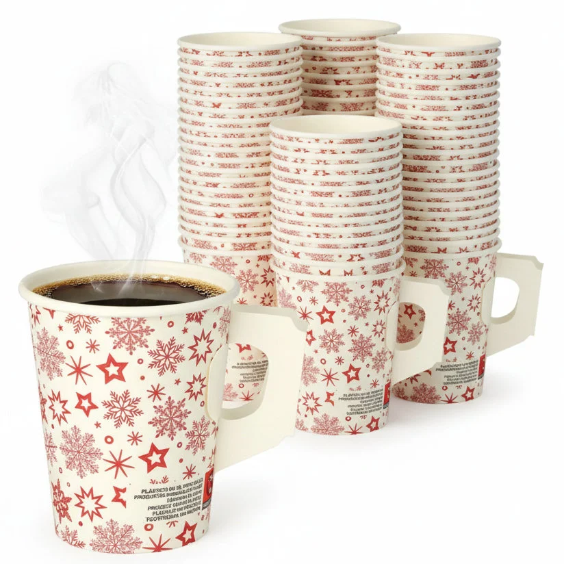 Kubek papierowy świąteczny z uchwytem 200 ml 50 szt