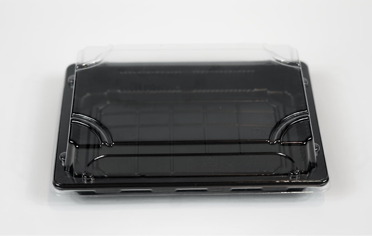 Idealnie sprawdzi się do serwowania SUSHI, ale także innych potraw zimnych. Dzięki transparentnej pokrywce sushi jest pięknie wyeksponowane. Pokrywka jest na tyle wysoka, że rolki nie przyklejają się do opakowania.