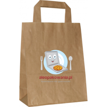Torba papierowa malutka brązowa płaski uchwyt 18x9x23 cm Z NADRUKIEM 1 STRONNYM 100 szt