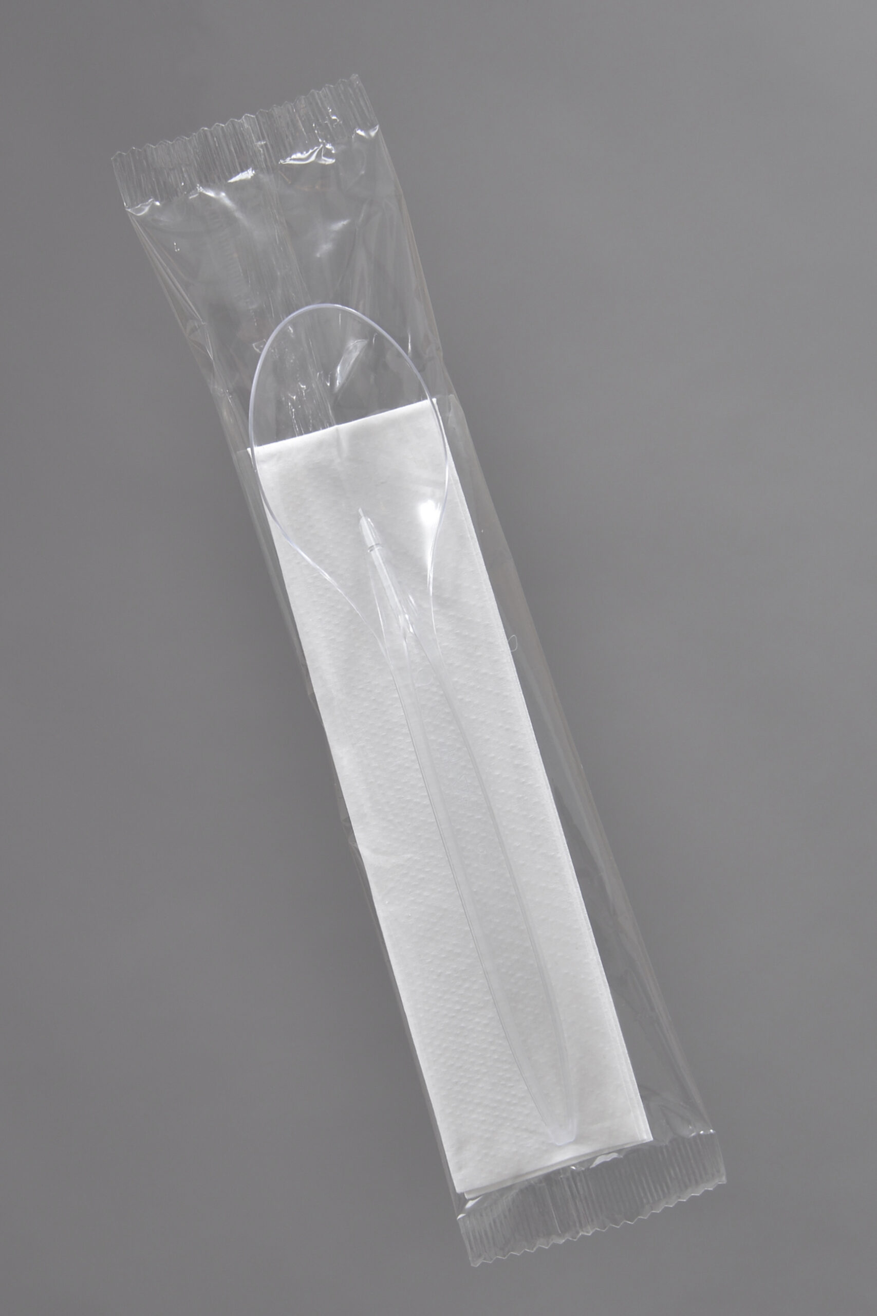 Zestaw sztućców łyżka + serwetka transparentne w folijce 350 szt